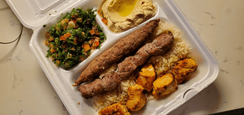 The Mixed Grilled Plate is a standout if you want variety. With three different skewers served on a bed of rice and a choice of two sides, it’s ideal for anyone who wants a little bit of everything (and honestly, who doesn’t?). Each skewer is flavorful, juicy, and cooked just right.