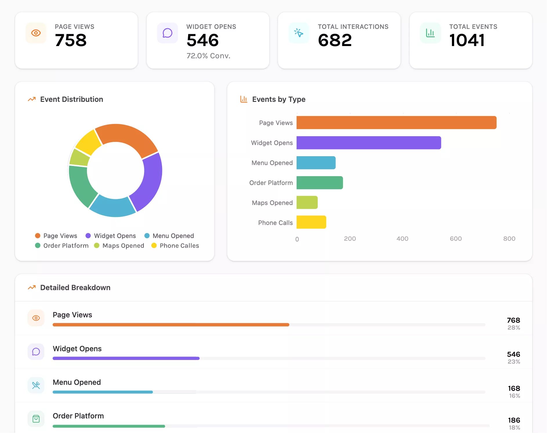 See performance in a basic Wivibo dashboard and get weekly reports on Concierge opens, CTA clicks, and top traffic sources.